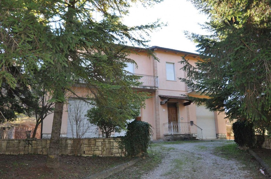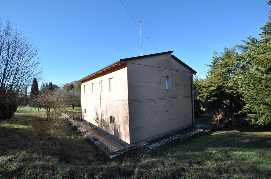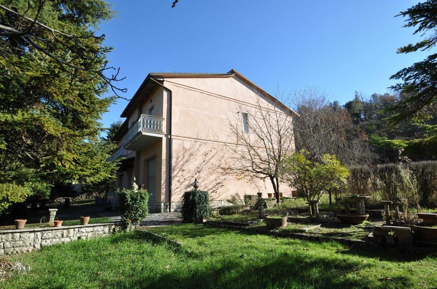 Petroio. Casa singola posta in campagna, a 500 mt dal centro, disposta su due livelli, per una superficie complessiva di circa 300 mq., e composta al piano primo da abitazione con soggiorno, tinello, cucinotto, 4 camere, bagno, terrazze, ed al piano terreno da grandi fondi uso rimessa. Completa la proprietà un terreno circostante di circa 5000 mq. Buone condizioni generali.