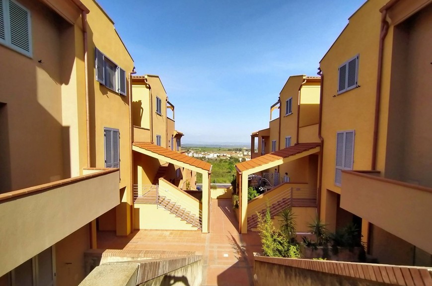 Appartamenti varie tipologie inseriti in lottizzazione appena conclusa, ubicati in posizione di collina, nel versante della Diaccia Botrona e che guarda verso il mare; gli appartamenti (appena completati e mai abitati) hanno accesso singolo ed indipendente, con le seguenti tipologie; 1) Bilocale 60 mq commerciali con soggiorno, cucinotto, camera, bagno, giardino e portico di 40 mq. + posto auto coperto, richiesta euro 255.000; 2) Trilocale di 60 mq commerciali con soggiorno/pranzo, 2 camere, bagno, terrazzo. + posto auto scoperto, richiesta euro 235.000. Gli appartamenti sono dotati di utenze singole, compreso impianto di riscaldamento e raffrescamento con pompa di calore. Pur essendoci estrema facilità di parcheggio, gli immobili è dotato di posti auto in proprietà. La lottizzazione è inserita all'interno di un grande parco con verde e pista ciclabile. Gli immobili vengono venduti con contratto di riserva di proprietà che consente all'acquirente di prendere possesso immediato dell'immobile, e pagarlo a rate in 5 anni senza interessi.