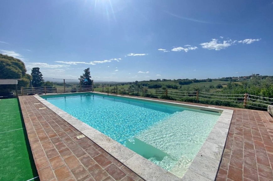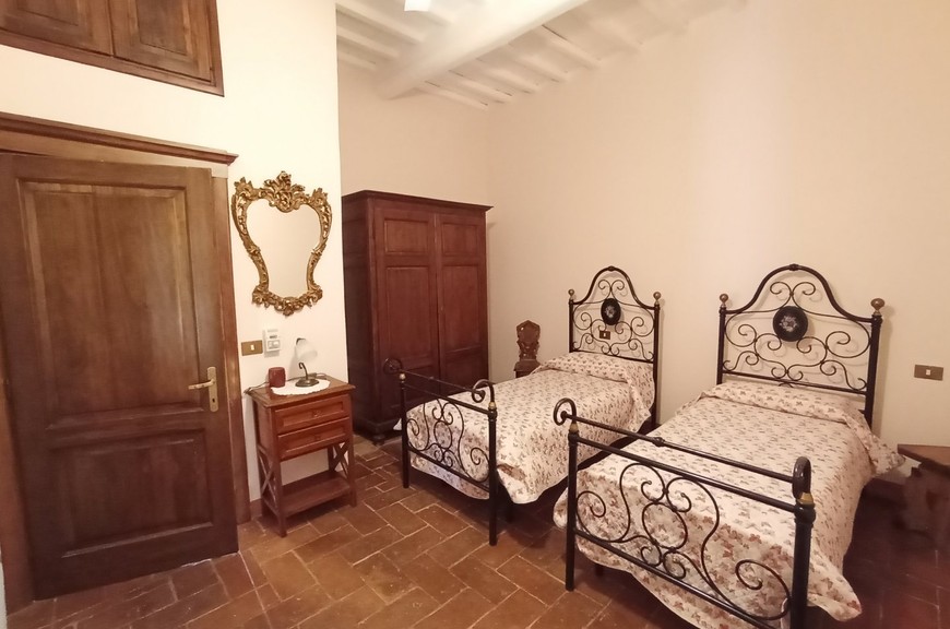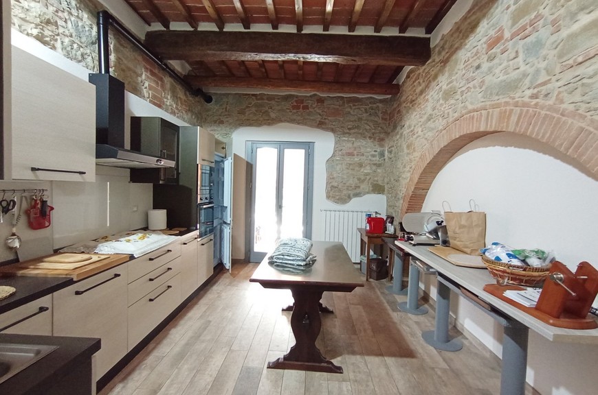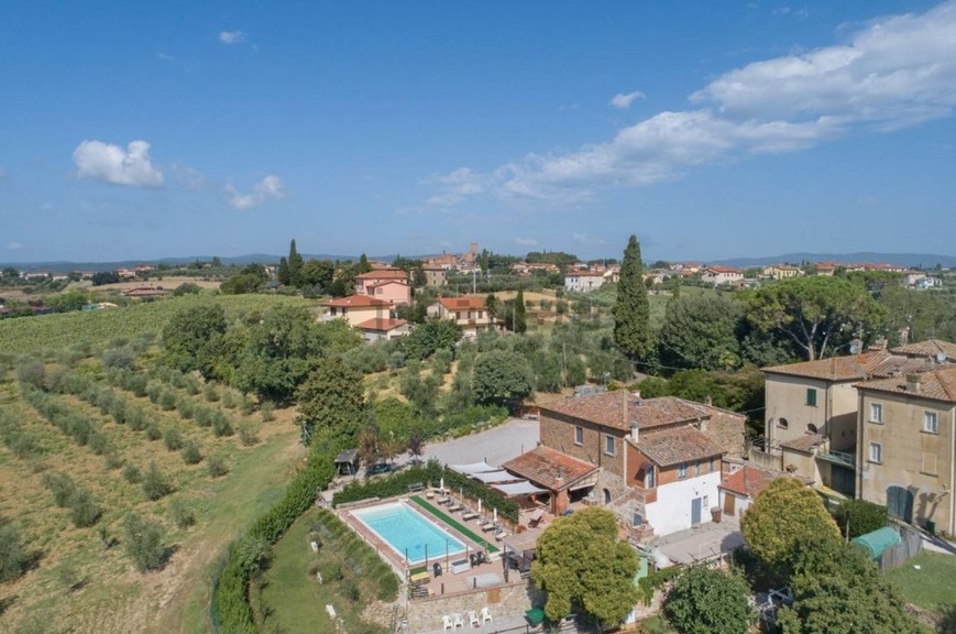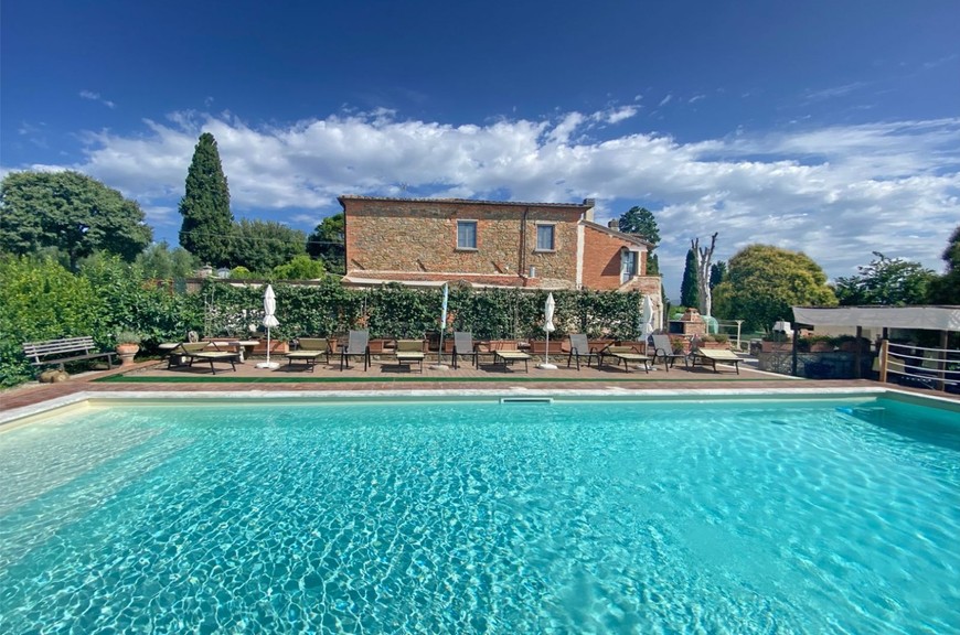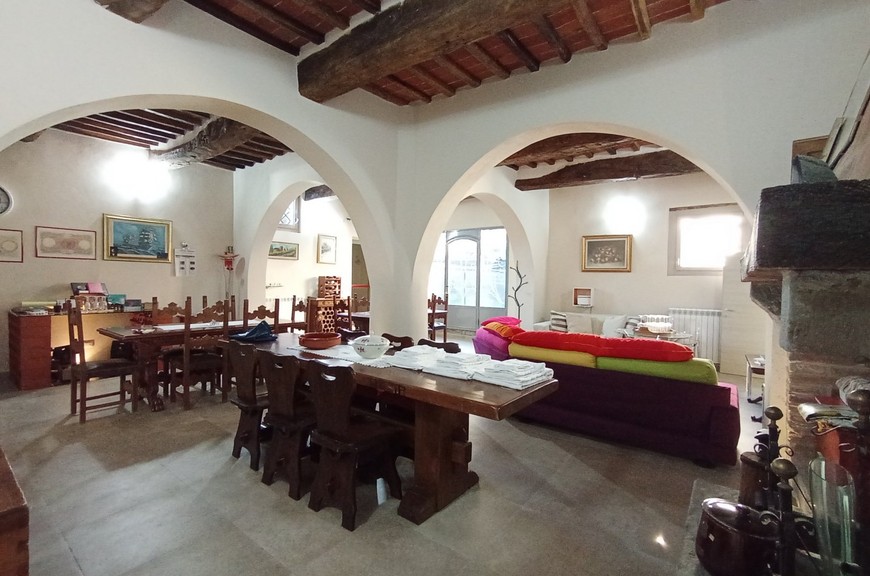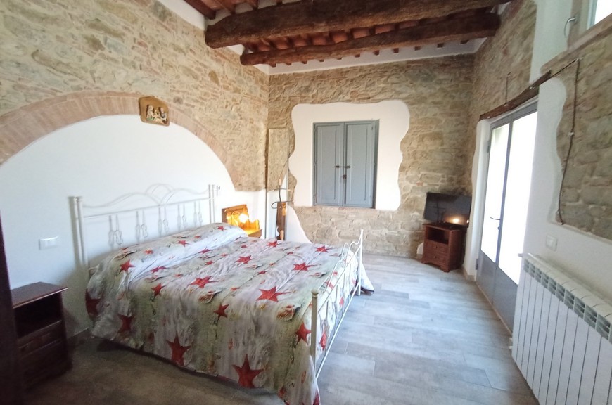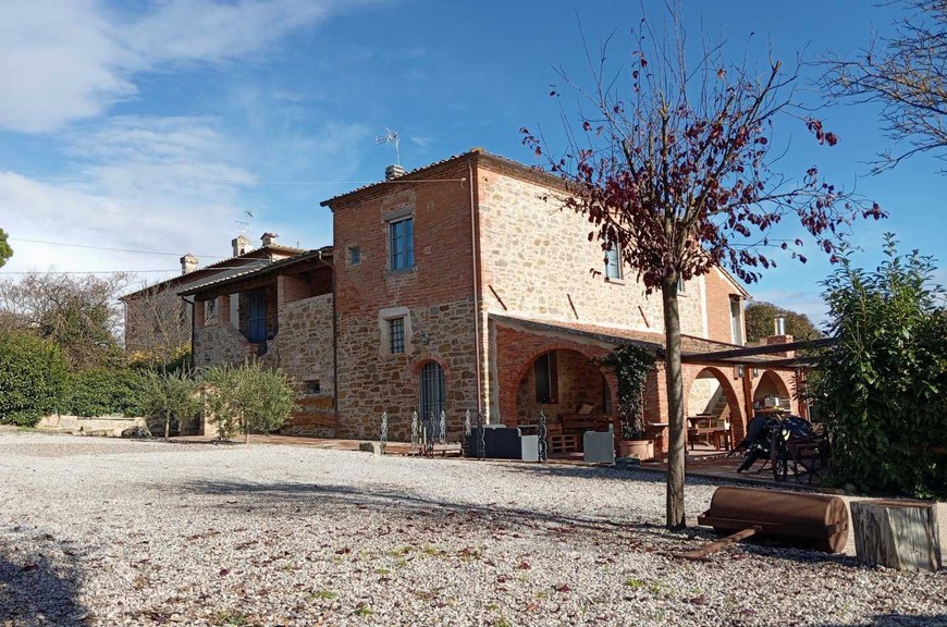 Il Vecchio Frantoio, è uno splendido casale sapientemente e recentemente ristrutturato, ubicato alle porte del centro storico di Marciano della Chiana, in posizione di media collina. Il complesso ha una superficie di circa 400 mq lordi commerciali, disposti su due livelli, e suddivisi in 3 appartamenti così disposti: 1) al piano terreno troviamo l'abitazione principale di circa 200 mq, ricavata nei locali che ospitavano il vecchio frantoio, e dove sono ancora presenti le originarie strutture con volte e colonne in mattoni; il grande salone centrale distribuisce alle 2 camere interne, oltre che due esterne con accesso indipendente, tutte con bagno privato, oltre cucina/pranzo, ; 2) al piano primo abbiamo un altro appartamento di circa 80 mq. con cucina/pranzo, 2 camere e bagno; 3) il terzo alloggio di circa 120 mq posto al piano primo, ospita una cucina/pranzo, 4 camere da letto e 2 bagni. Esternamente, nel cortile, c'è una piscina di dimensioni 12x5 che si affaccia sulla sottostante vallata, ed il cortile con terreno, per una superficie complessiva di circa 1800 mq. La struttura si presta particolarmente ad un utilizzo ricettivo, come avviene attualmente, con ottimi ricavi. Principali distanze: Casello A1, 5 km, Arezzo 25 km, Cortona 20 km, Firenze 80 km, Siena 55 km