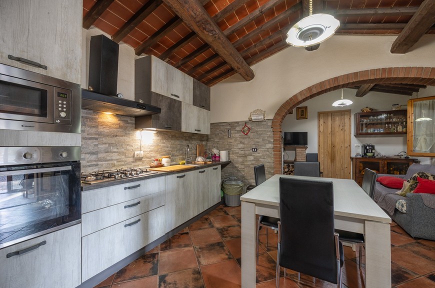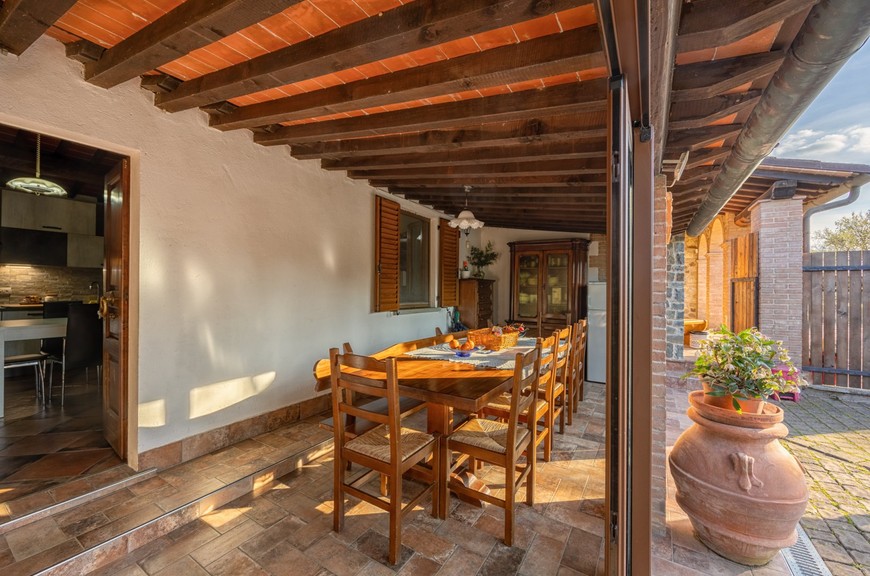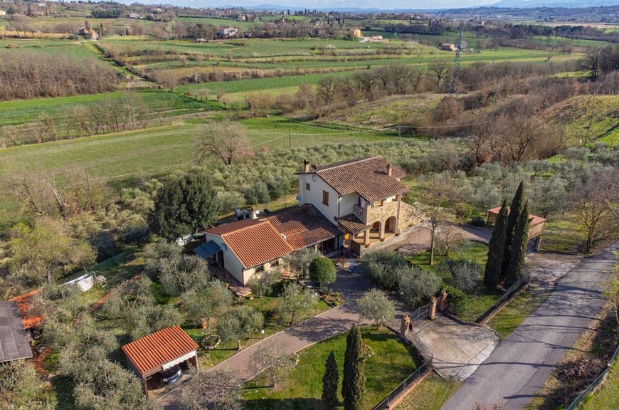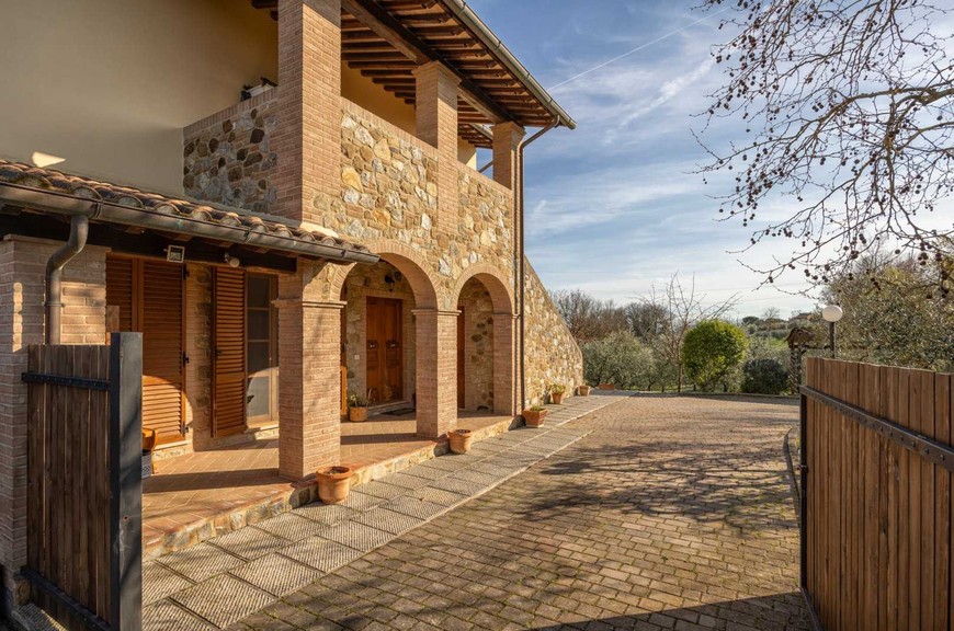 Nelle colline della valdichiana, proponiamo questo casale realizzato con caratteristiche rustiche nel 2007, successivamente ampliato nel 2019, per una superficie totale di circa 200 mq commerciali, attualmente distribuiti su due alloggi, collegati internamente ed utilizzabili anche come unica abitazione. Distribuzione: La prima abitazione è composta da salone, cucina e bagno al piano terreno, oltre 3 camere e bagno al piano primo, con loggia; la seconda abitazione è dislocata al piano terreno, con accesso da porticato, e composta da soggiorno con camino, cucina/pranzo, camera, cameretta e bagno. L'intera proprietà si presenta in ottime condizioni, presenti sistema di allarme e climatizzazione. Il terreno circostante recintato è di circa 1 ettaro, e comprende 100 piante di olivo. La location è comoda da raggiungere da strada asfaltata, in zona collinare silenziosa e riservata.
