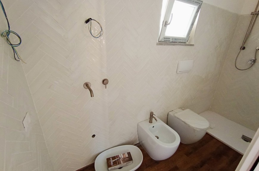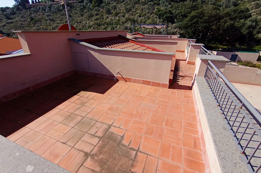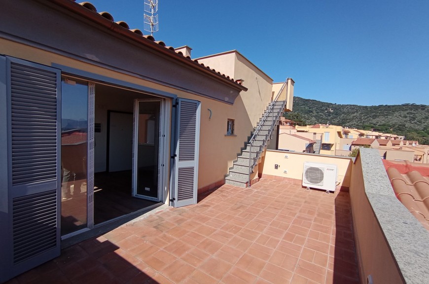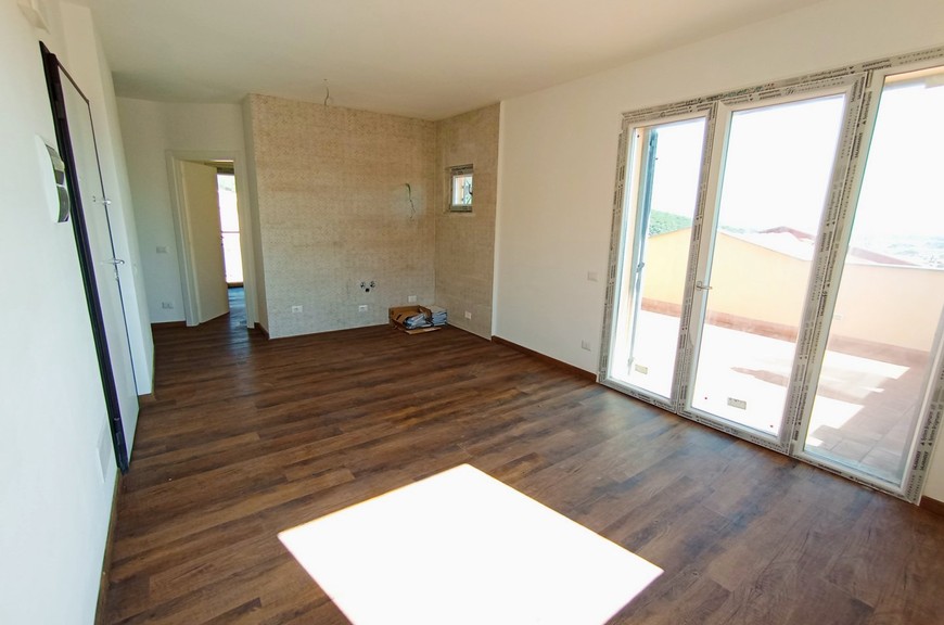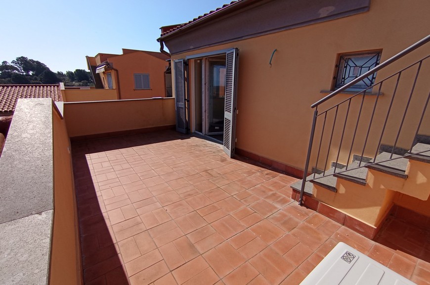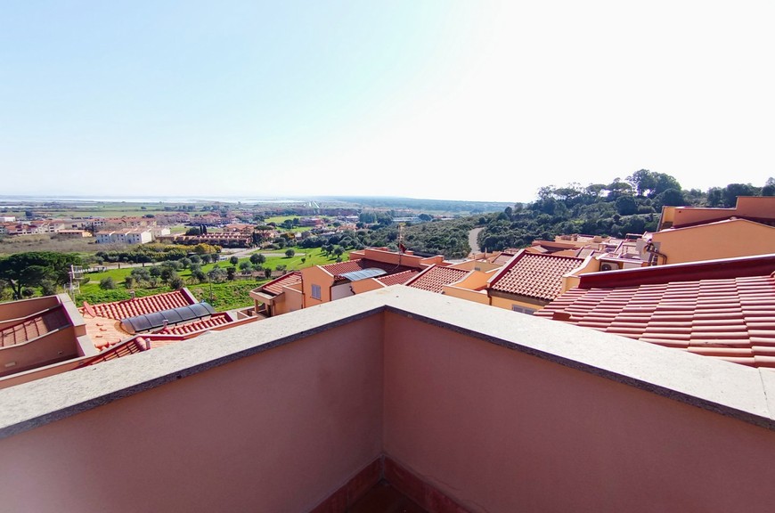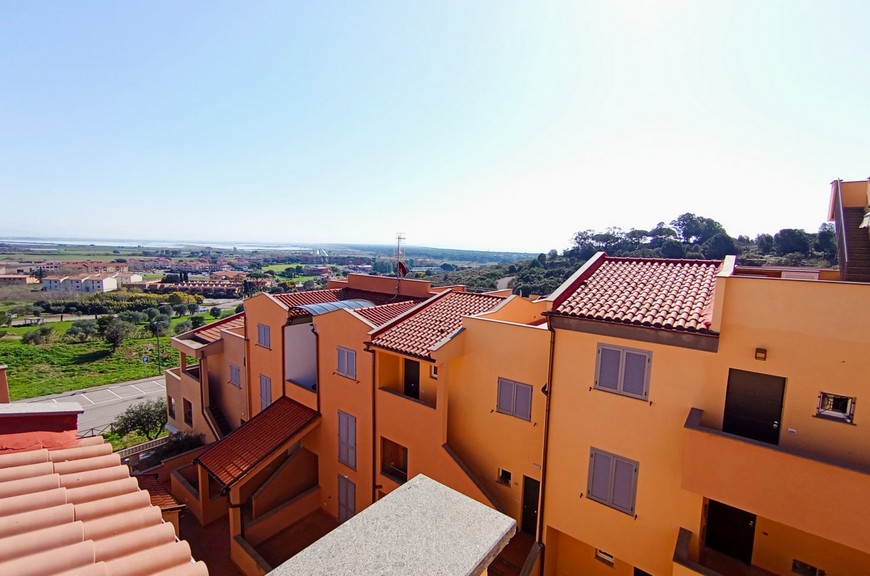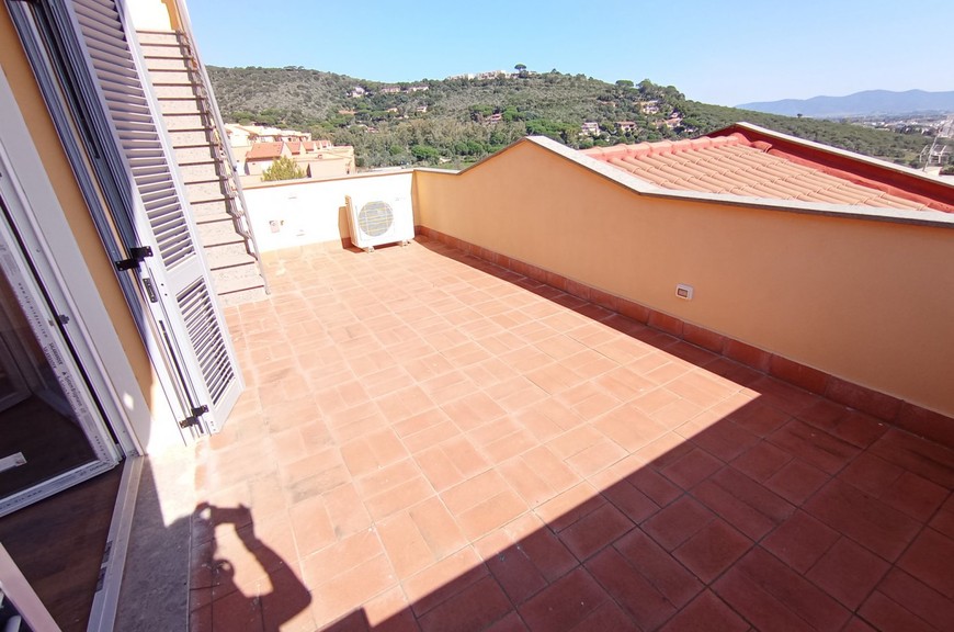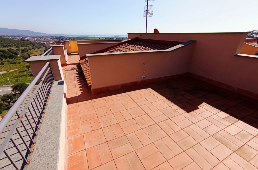 Appartamenti di varie tipologie inseriti in lottizzazione appena conclusa, mai abitati, ubicati in posizione di collina, nel versante della Diaccia Botrona che guarda verso il mare; gli appartamenti (appena completati e mai abitati) hanno accesso singolo o da scala esterna comune. Interno 48: Appartamento piano secondo ed ultimo (sopra non c'è nessuno) con scala coperta, mq 55 commerciali, composto da soggiorno con terrazzone di 30 mq. panoramico con vista mare, 2 camere, bagno, 2 terrazze-solarium di 25 mq riservate sul tetto, con vista meravigliosa, posto auto coperto. Pavimenti, rivestimenti e bagni extra-capitolato. Gli appartamenti sono dotati di utenze singole, compreso impianto di riscaldamento e raffrescamento con pompa di calore. Pur essendoci estrema facilità di parcheggio, gli immobili sono dotati di posti auto in proprietà. La lottizzazione è inserita all'interno di un grande parco con verde e pista ciclabile. Distanza dal centro circa 500 mt, distanza dal mare circa 1 km. Gli appartamenti sono liberi da subito, visionabili su appuntamento al tel. 335.5239734