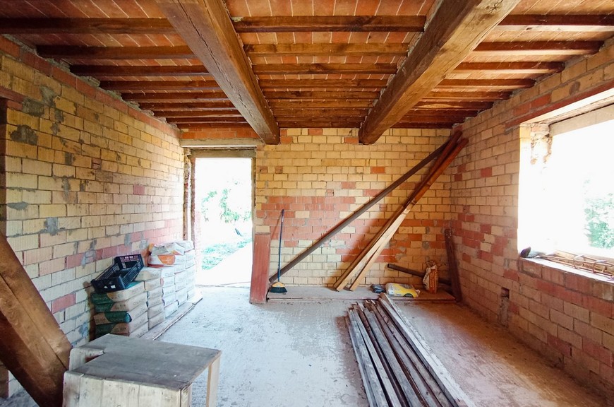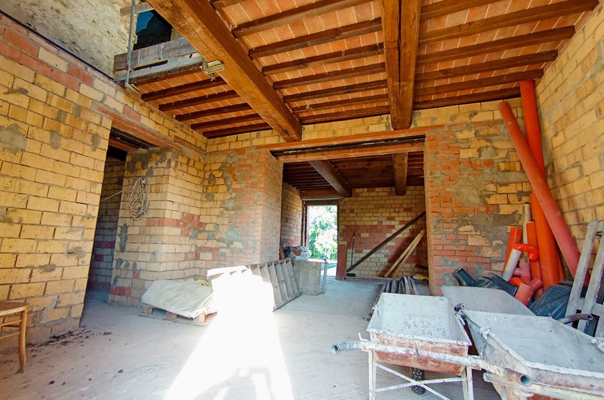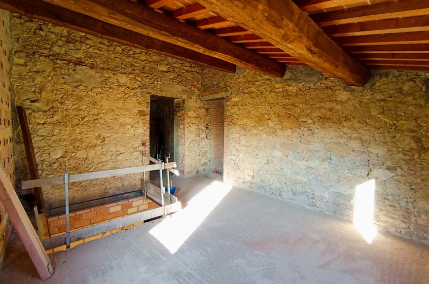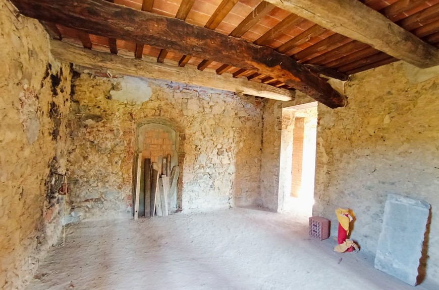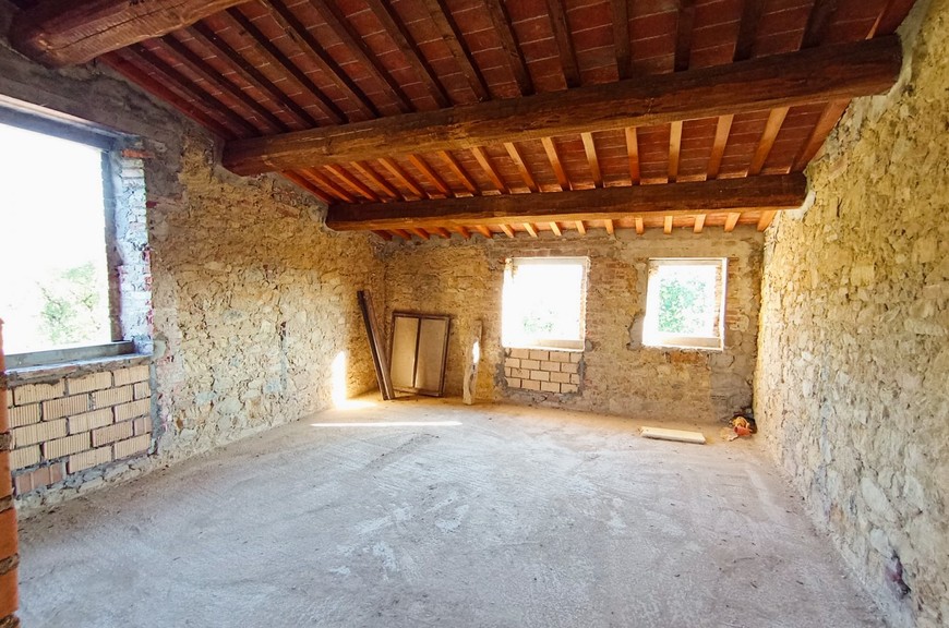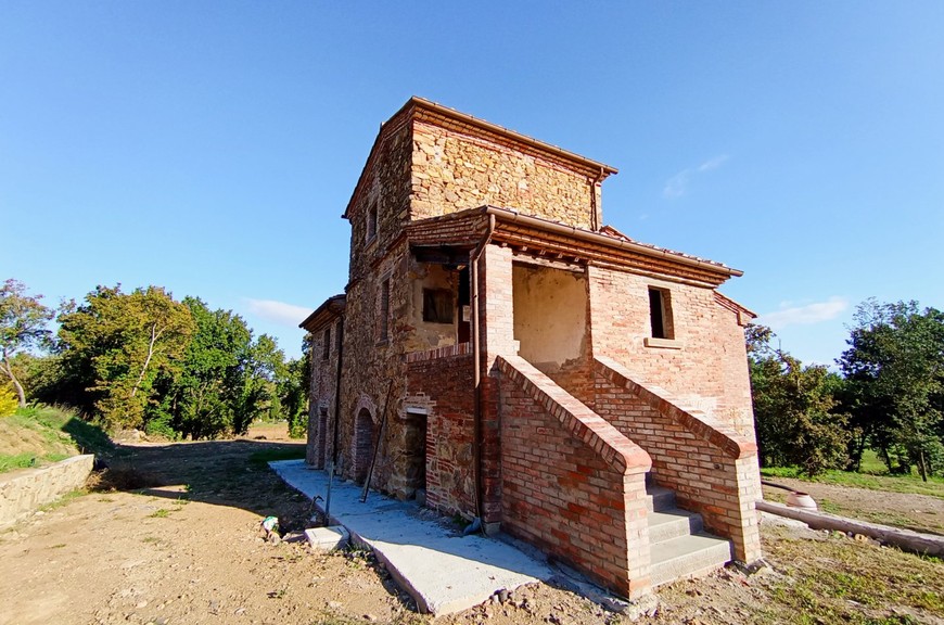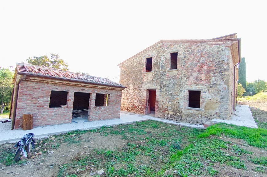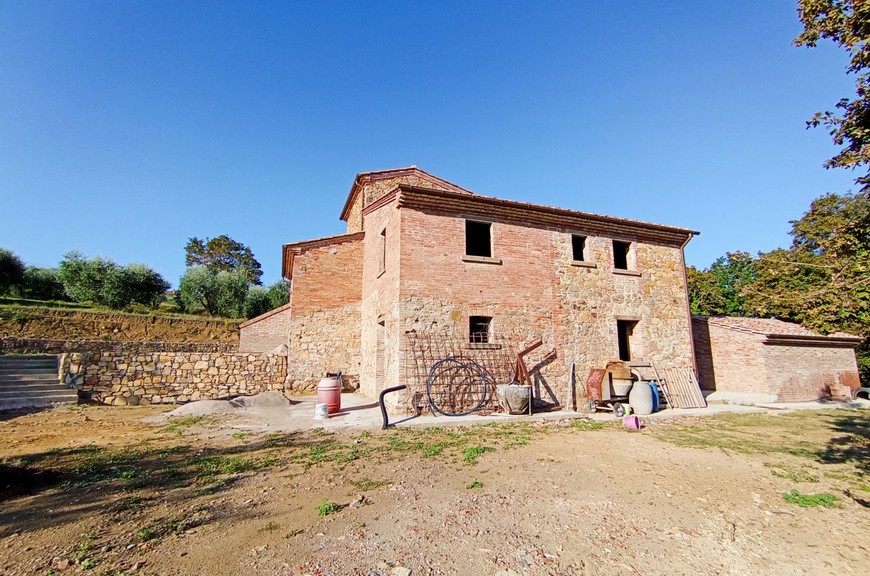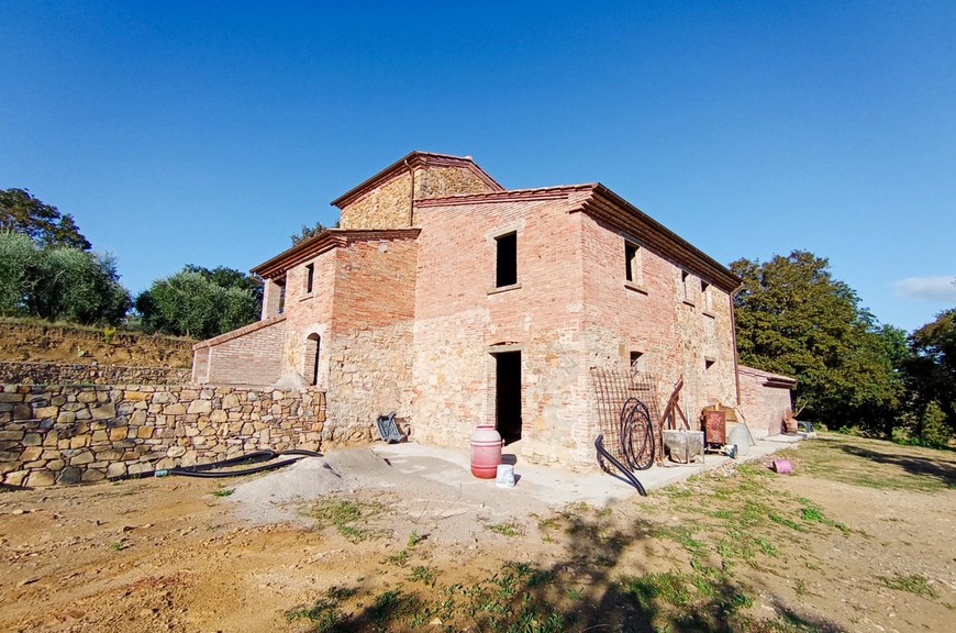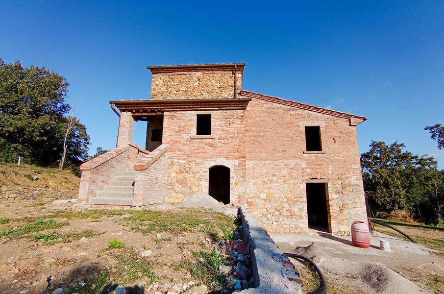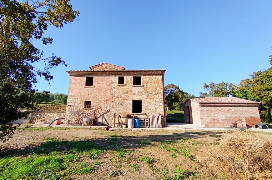 Questo tipico casale toscano è stato oggetto di un completo restauro e riprisstino di tutte le strutture; le opere hanno interessato le fondazioni, i solai, il tetto, le murature, il tutto con adeguamento antisismico come da normative vigenti. Il casale, della superficie commerciale di circa 270 mq., è stato predisposto per una grande abitazione su due livelli, oltre mansarda, con accesso sia da predisposizione di scala interna che dall'attuale scala esterna; questa disposizione permetterebbe anche di realizzare due alloggi separati. Al piano terreno abbiamo un salone doppio, una cucina pranzo, un locale servizi/bagno, lavanderia, al piano primo abbiamo un salottino di ingresso con loggia, 3 camere, 3 bagni, oltre quarta cameretta nella mansarda. La disposizione interna può variare a piacimento dell'acquirente. Completano la proprietà un annesso di circa 25 mq. posto sul retro, ed una proprietà circostante di terreno, della superficie di circa 20.000 mq., con seminativo, oliveto e bosco. Zona di media collina, tranquilla e silenziosa, comoda da raggiungere e non troppi distante dal centro. Da valutare la possibilità per il cliente di acquistarlo finito. E possibile realizzare una piscina.