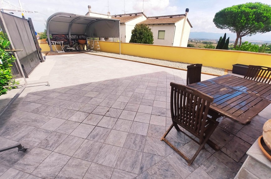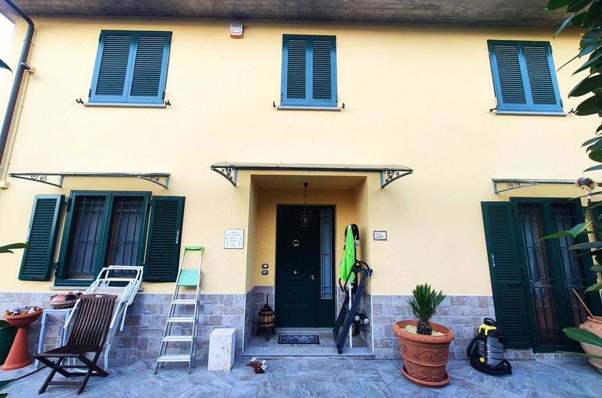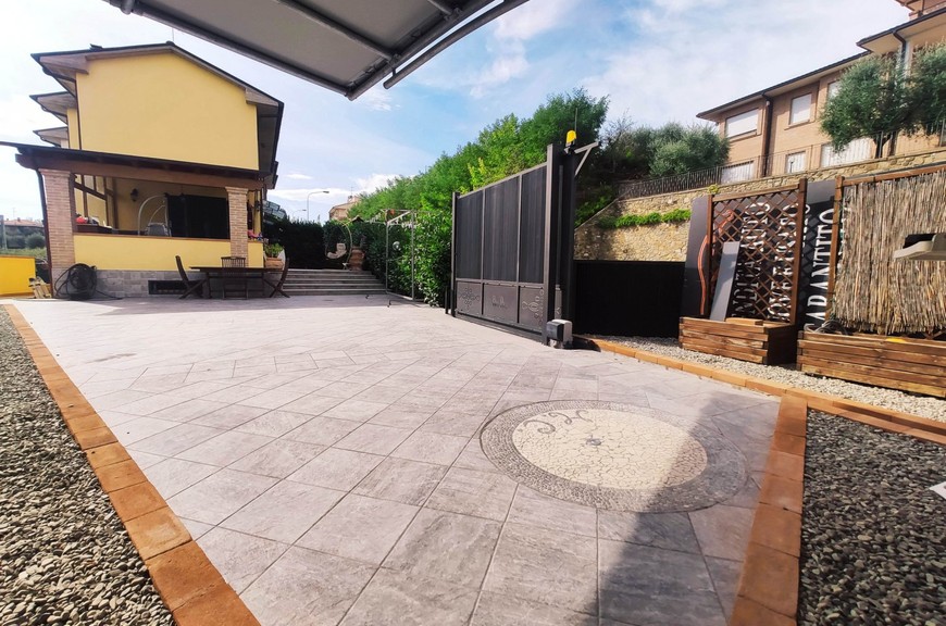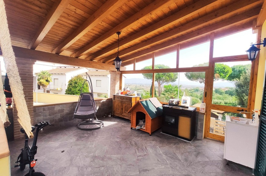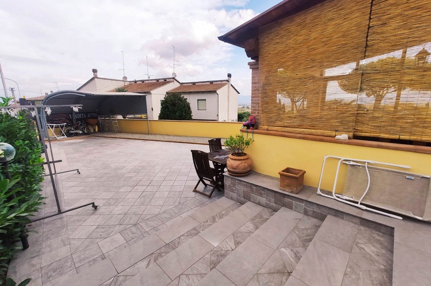 Loc. Pozzo; vendiamo villetta a schiera capotesta, recentemente e completamente ristrutturata, superficie lorda complessiva di circa 200 mq, disposta su 3 livelli, e così composta; al piano terreno troviamo l'ingresso, un ampio soggiorno con terrazzo, ed una cucina/pranzo abitabile con accesso diretto su terrazzo coperto con tetto in legno e con affaccio sul cortile, nel quale è possibile pranzare; al piano primo sono presenti sia la camera padronale, che una grande camera con guardaroba (con 2 finestre, quindi trasformabile all'occorrenza in due camerette), ed un grande bagno con vasca idromassaggio. Al piano seminterrato, raggiungibile da scala interna, troviamo garage, taverna e locale pluriuso, una cantina seminterrata ed un bagno. Esternamente sono state realizzate opere di piastrellatura sull'ampio cortile di circa 100 mq, che consentono il parcheggio di 2 auto all'interno della proprietà. Ottime le finiture e la dotazione impiantistica, con impianto di allarme con videosorveglianza ed inferriate a tutte le aperture, vasca idromassaggio a due posti. Possibile vendita anche con tutti gli arredi presenti, compresa una piscina fuori terra.